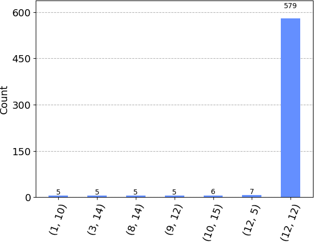 Then we use our preferred framework and simulator for sampling the result; this is an example using qiskit with aer_simulator.